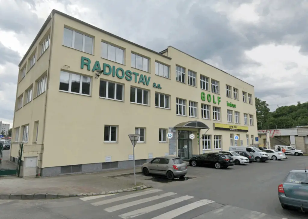 Vstup do budovy přes recepci Radiostavu z ulice Pod Paťankou